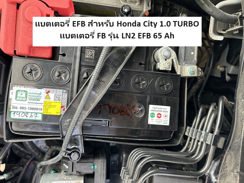 แบตเตอรี่ตรงรุ่นสำหรับ Honda City TURBO ชนิด EFB FB รุ่น LN2 EFB 65 Ah
