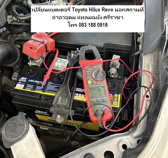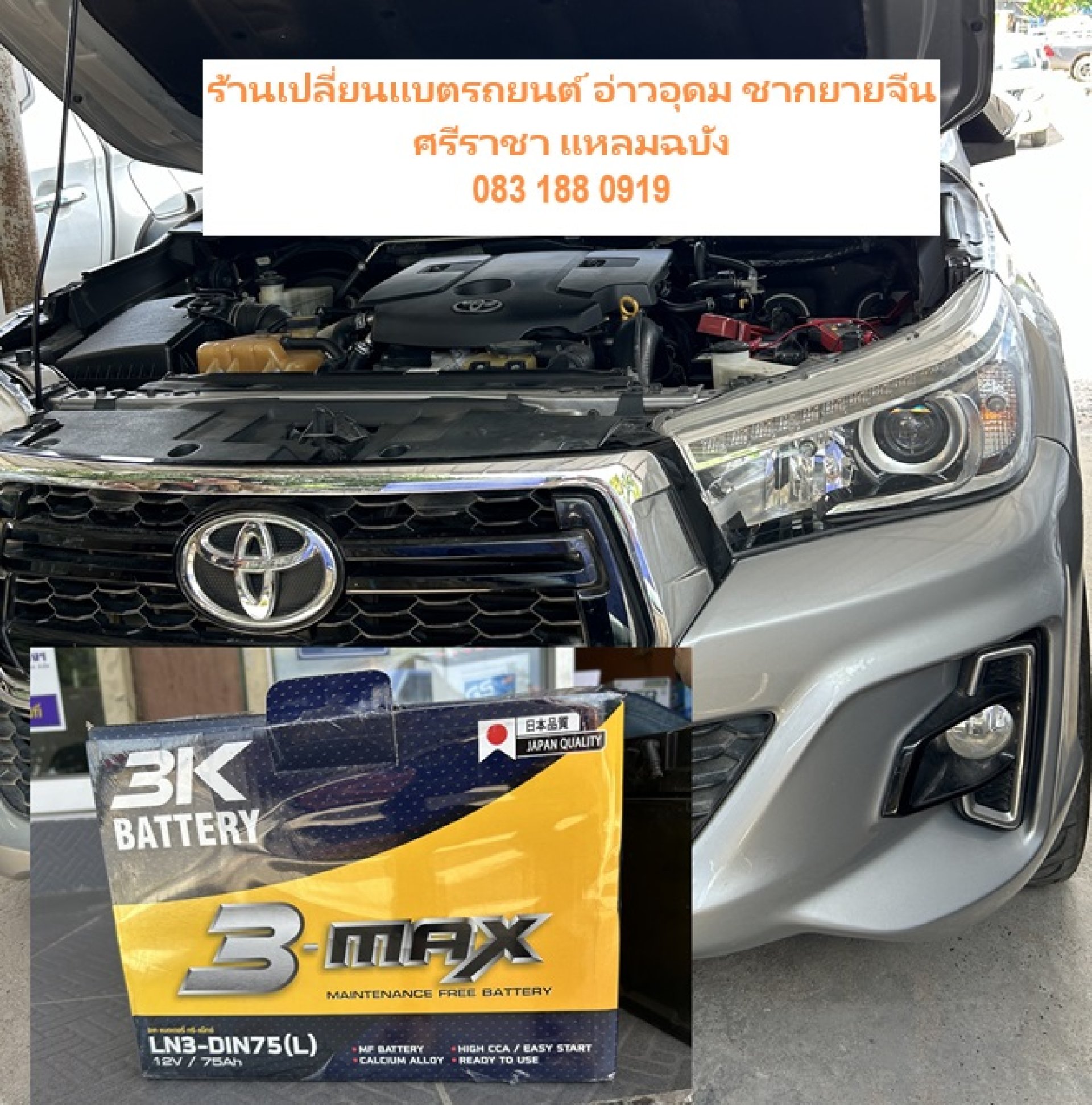 เปลี่ยนแบตเตอรี่ Toyota Hilux Revo นอกสถานที่ ด้วย 3K MAX LN3 75แอมป์ แบตเตอรี่ขั้วจมตรงรุ่นชนิดกึ่งแห้ง (Maintenance Free)