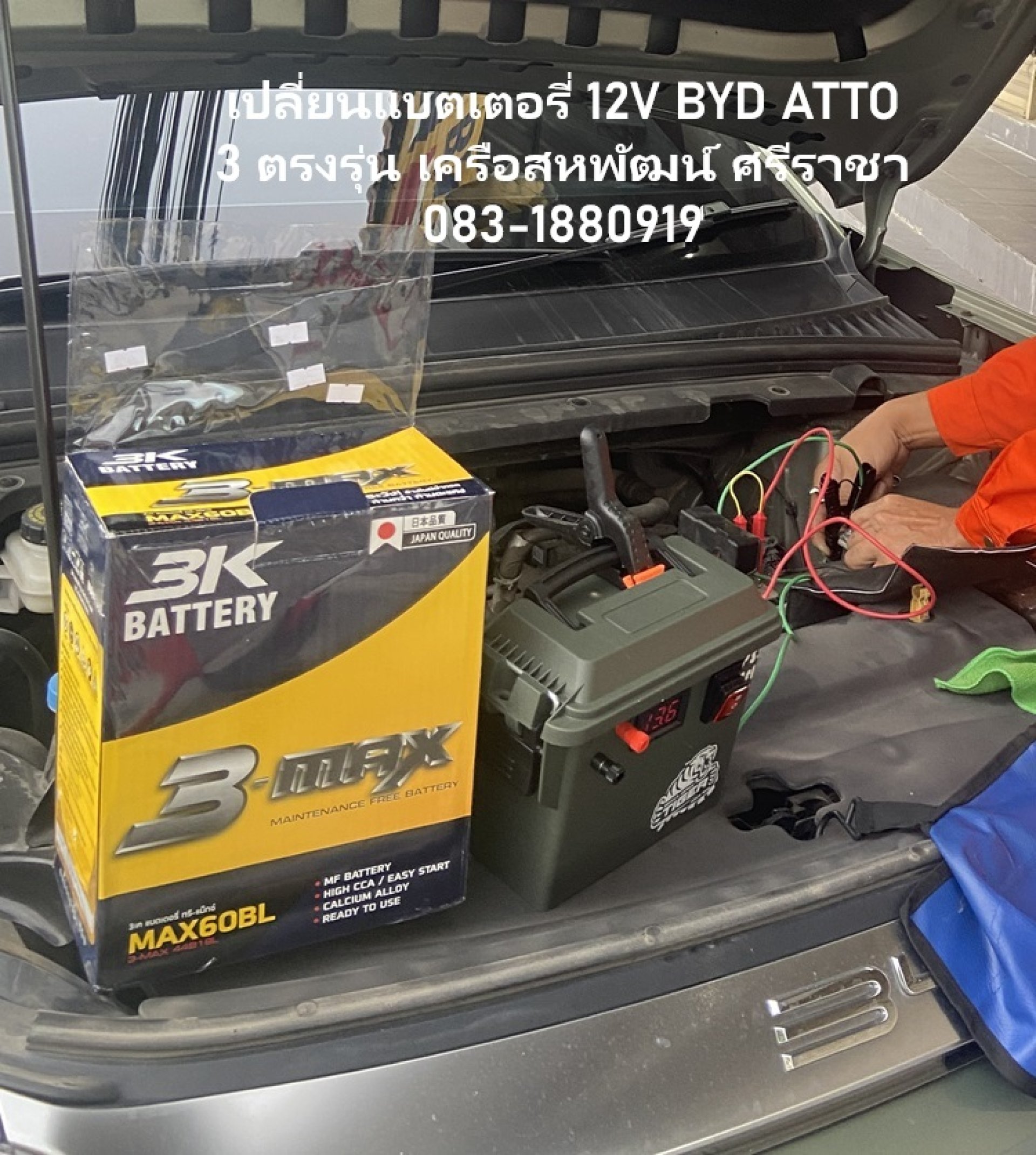 เปลี่ยนแบตเตอรี่ 12V BYD ATTO 3 ถึงที่ เครือสหพัฒน์ ศรีราชา บริการ 24 ชั่วโมง